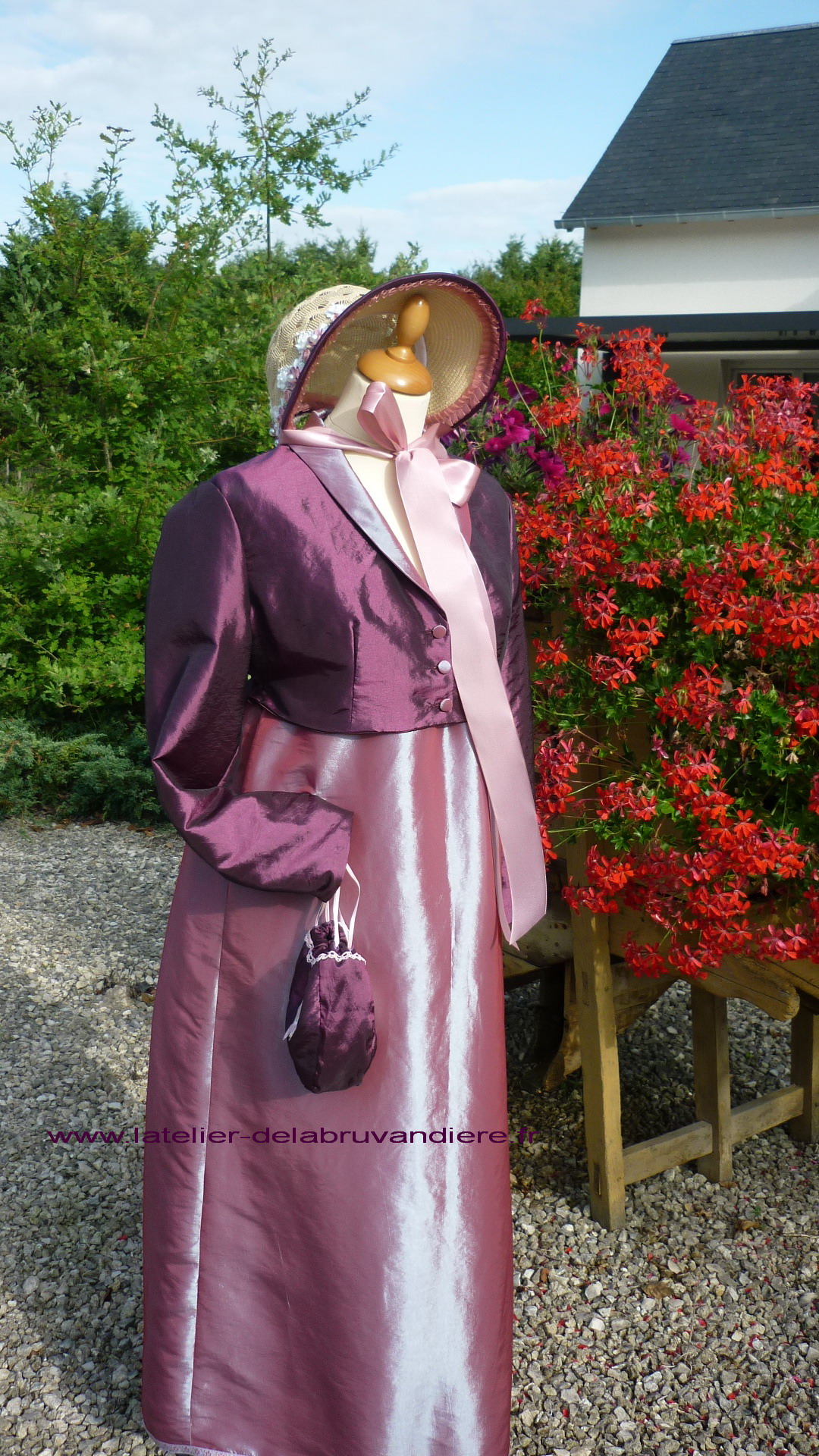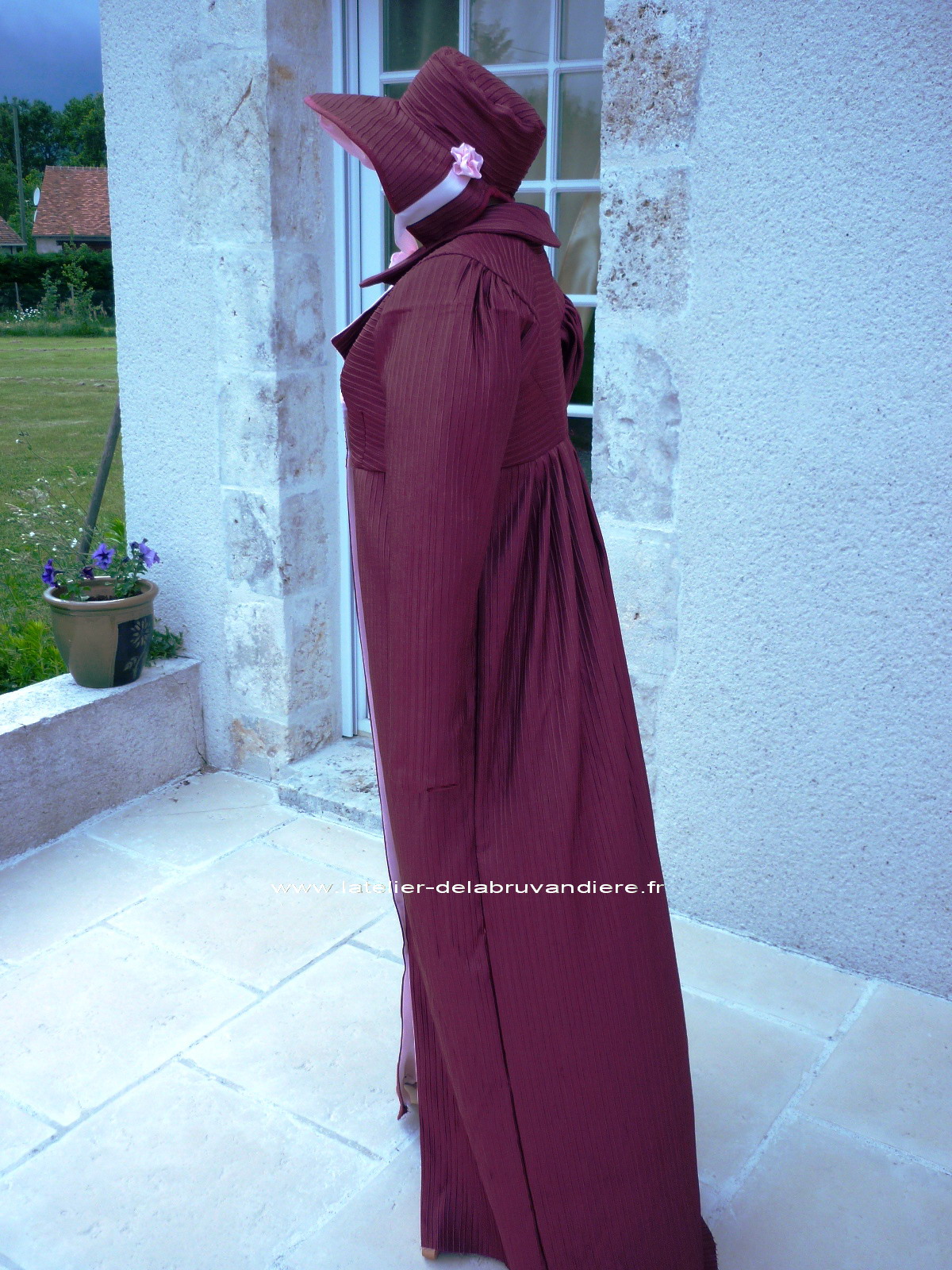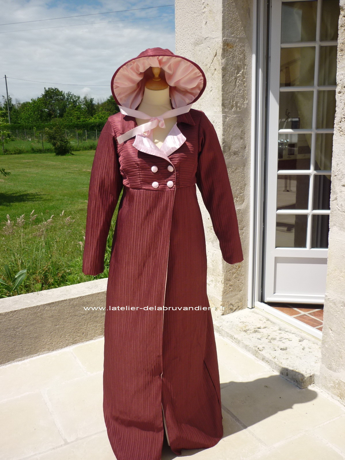 cet ensemble robe et spencer est réalisé en taffetas lie de vin agrémenté