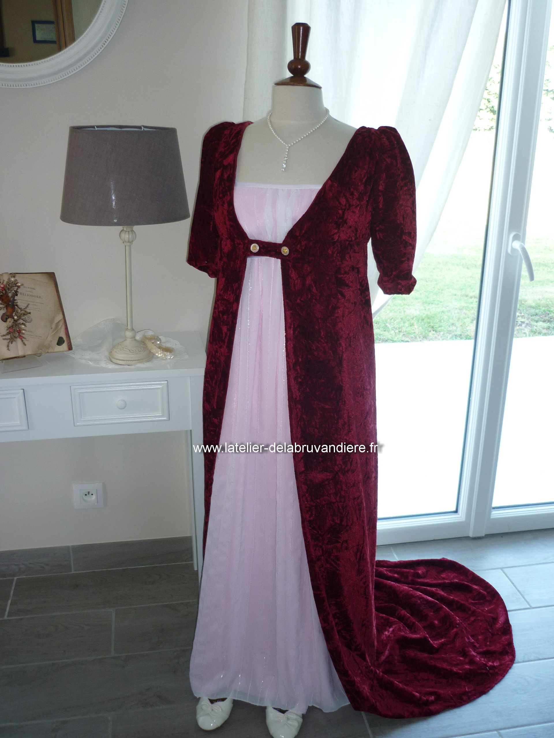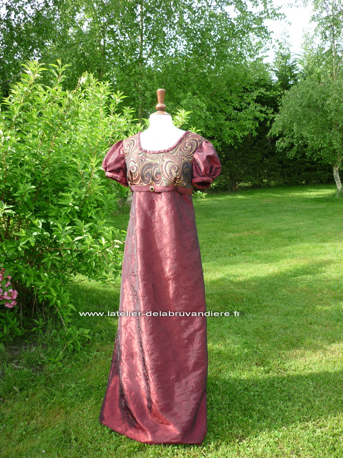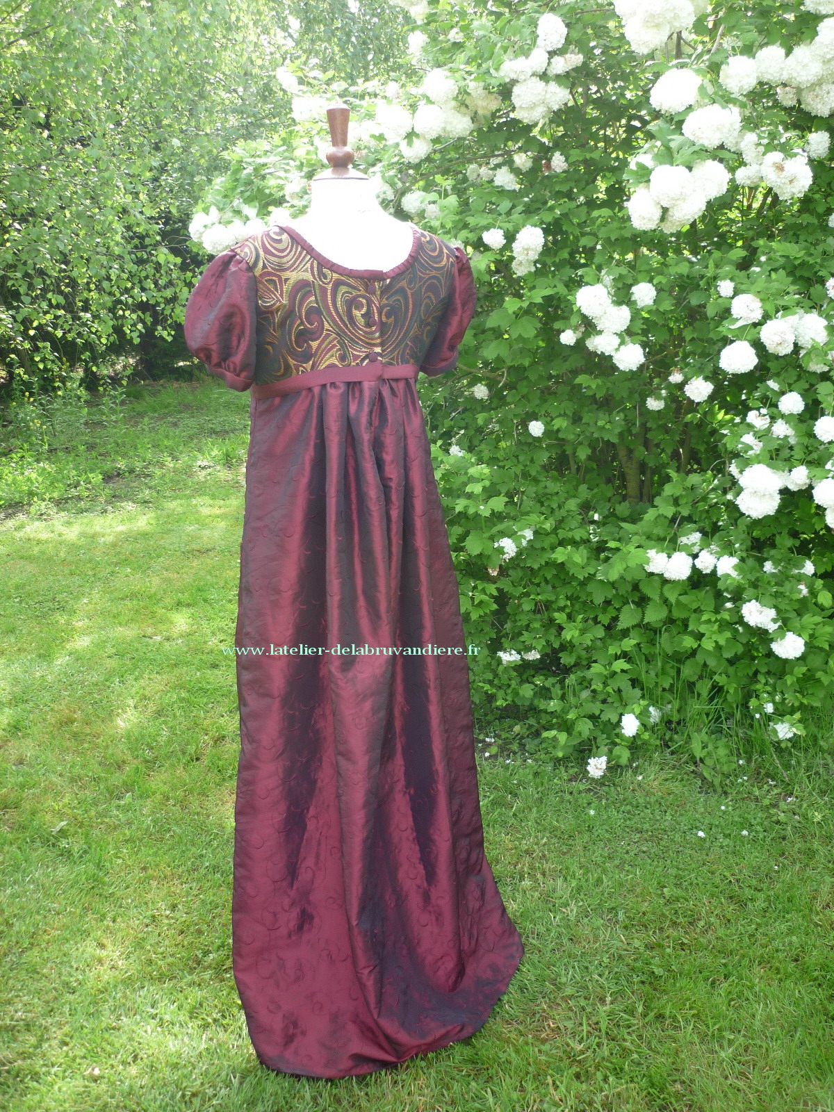 cet ensemble robe et spencer est réalisé en taffetas lie de vin agrémenté