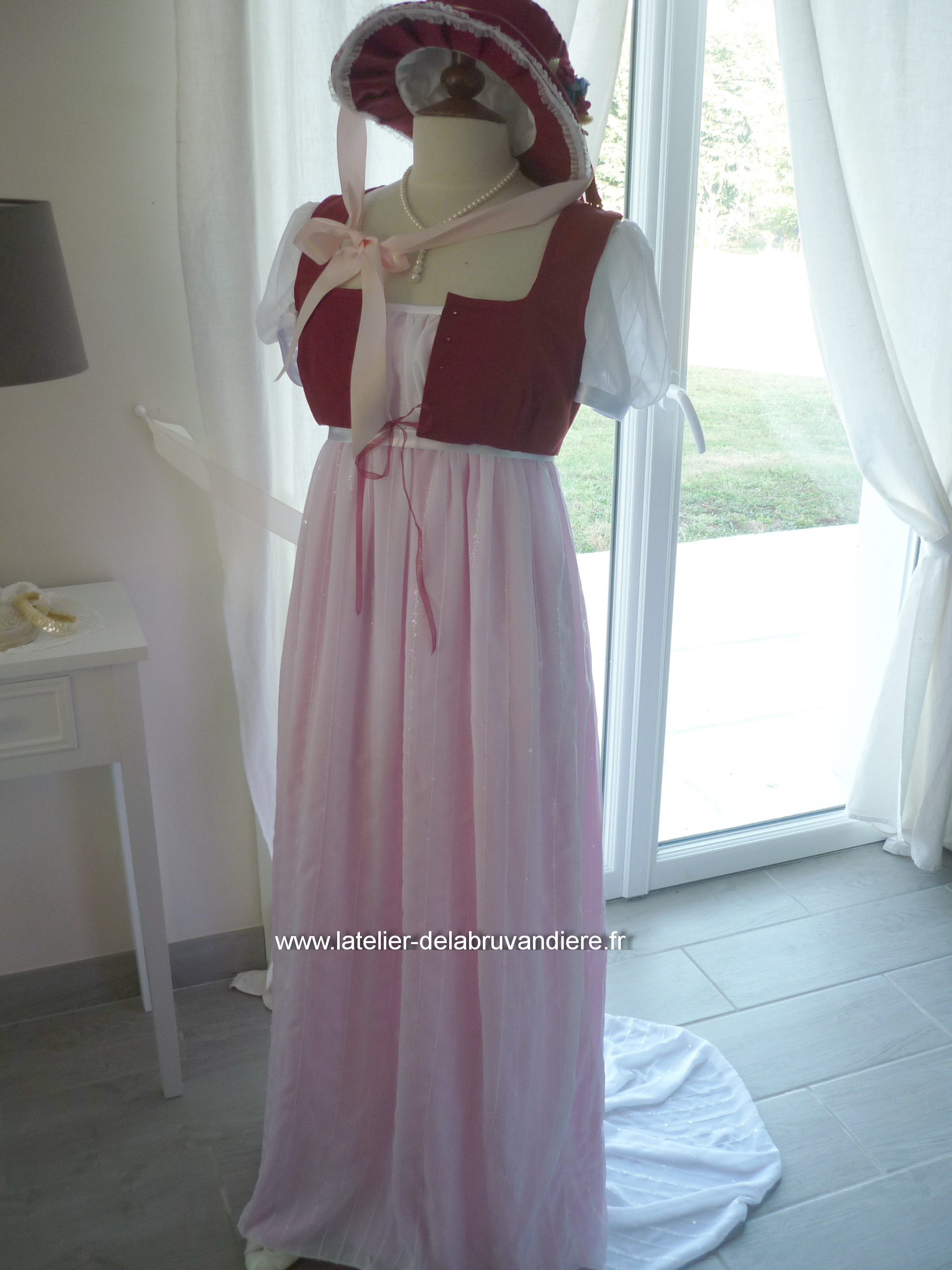 fermeture dos par 3 boutons. elle se porte sur un jupon regency en coton.