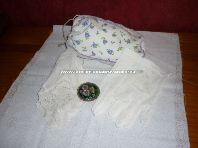 Aumonière réalisé dans le même tissus.